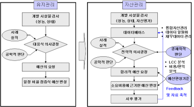 국내의 자산관리는 도입초기단계로 2007년 “지방자치단체 회계기준”에 사회기반시설물 자산평가 규정이 도입되었고, 한국시설안전공단(2004년), 건설기술연구원(2010년), 한국도로공사(2011년) 등이 관련 연구를 수행하고, 2015년 서초구청에서 “도시인프라 자산관리 체계 구축”을 추진하는 등 일부 지자체에서 시범적으로 시행을 하고 있지만 시설물 관리주체 대부분이 아직은 도입에 소극적인 모습을 보이고 있다.